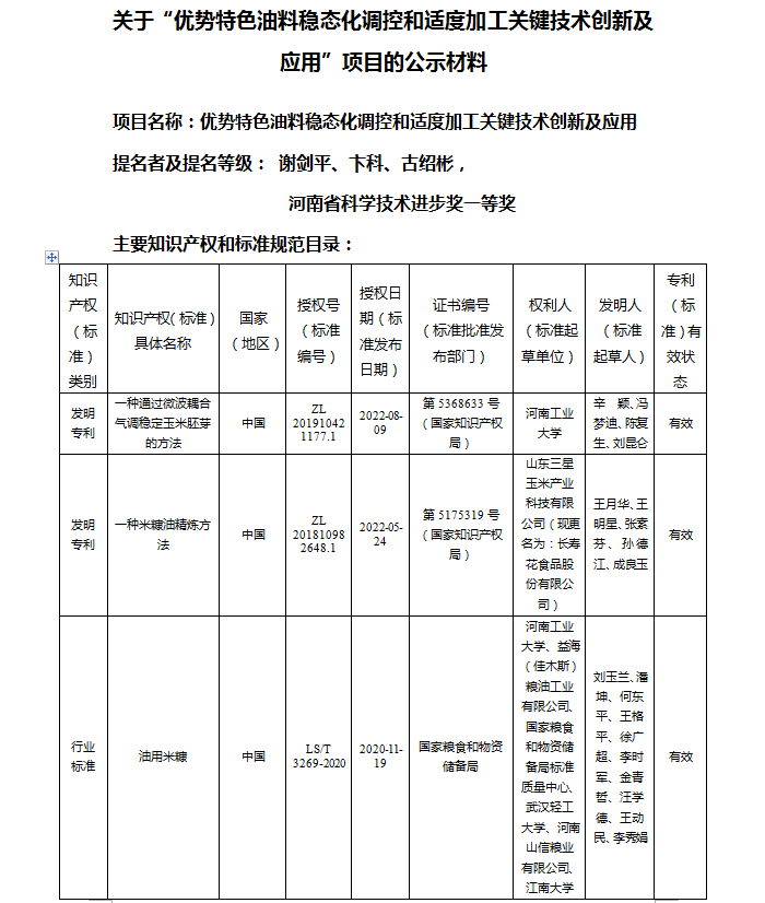 關(guān)于“優(yōu)勢(shì)特色油料穩(wěn)態(tài)化調(diào)控和適度加工關(guān)鍵技術(shù)創(chuàng)新及應(yīng)用”項(xiàng)目的公示材料
